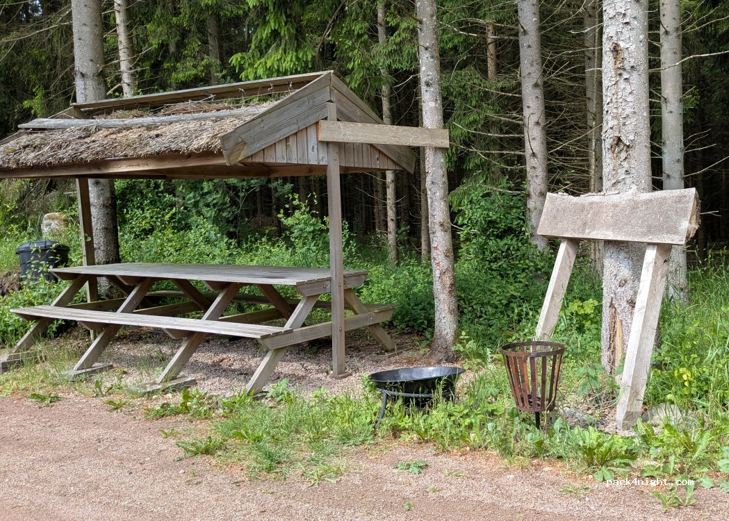 Ensligt belägen mitt i skogen. Synd att det saknas toaletter men det kanske skall tillkomma i byggnaden som uppförs.