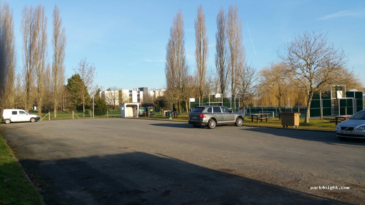 Nuit calme, un peu bruyant le matin à cause de la route qui longe le parking.