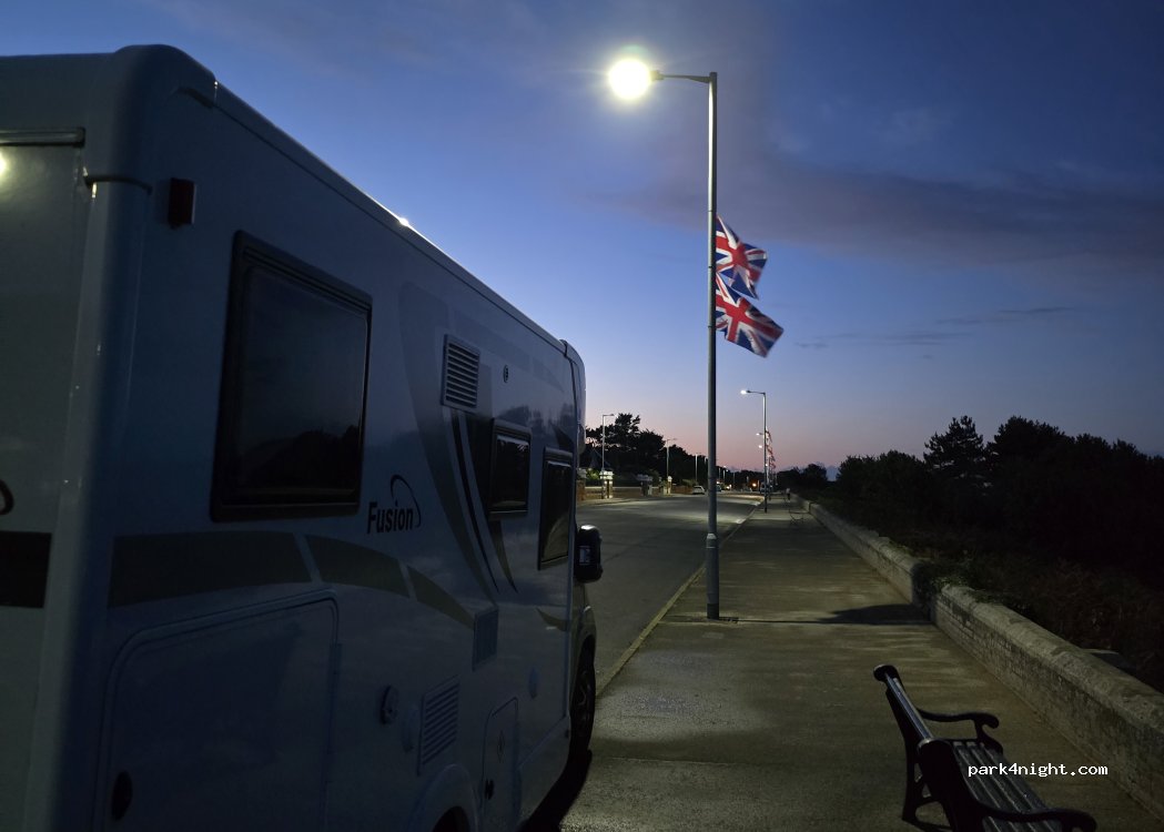 Very wide road and lots of ample parking, slightly awkward to avoid being right opposite any of the huge properties and blocking their amazing views. The road is quiet but certainly not silent ! Nice wander to the sea front. Definitely a good spot for a night but didn’t feel as welcoming as other places we’ve visited.