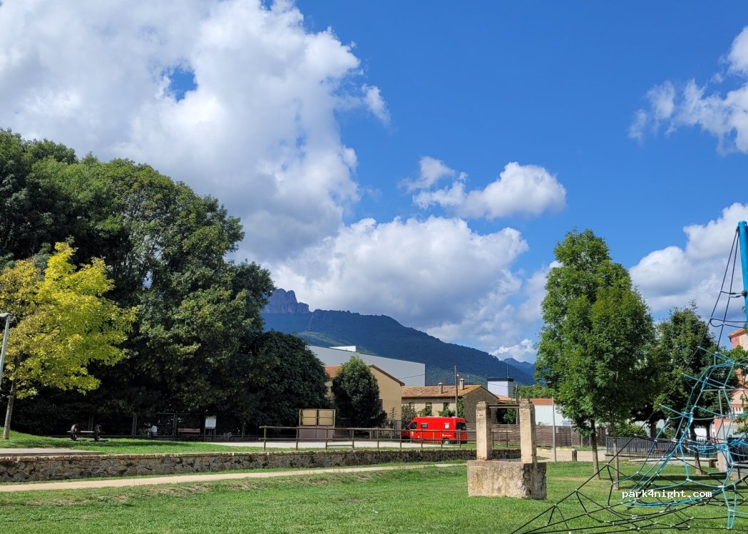 Parking sur la côte du camp de foot et dans une zone de joc per nens. Au bord de la via verda