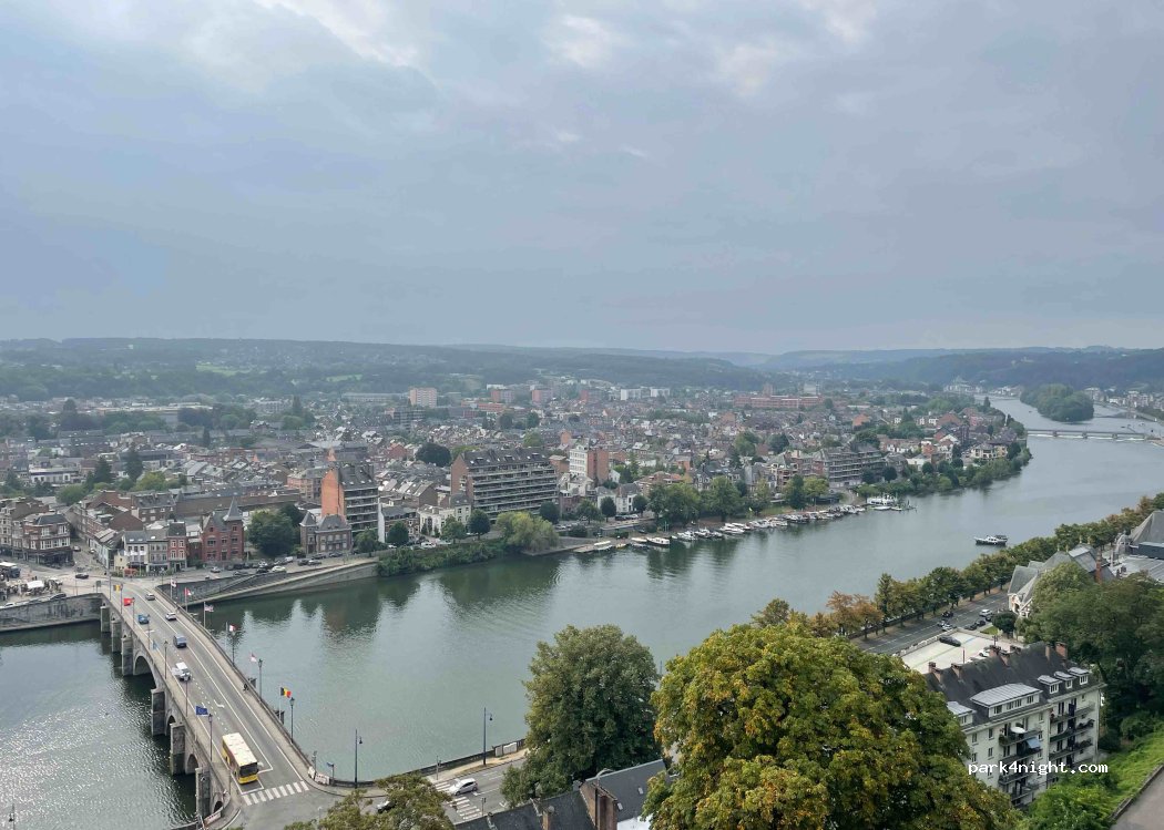 Heel mooi uitzicht over Namur, geweldig. Helaas niet kunnen slapen door overlast van de hangjeugd. Auto's rijden te hard langs, uitlaat herrie, en volop muziek uit de auto's tot 5.00u in de ochtend. Politie kwam langs, maar deed helemaal niks.