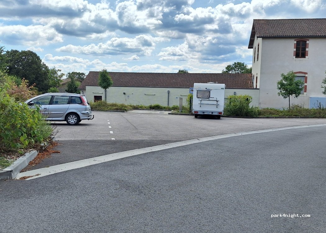 parfait pour y passer 1 nuit et rester la journée. calme , spacieux. boulangerie à 2 pas. ballade sympas aux alentours. vidange, alimentation en eau et wc : gratuite