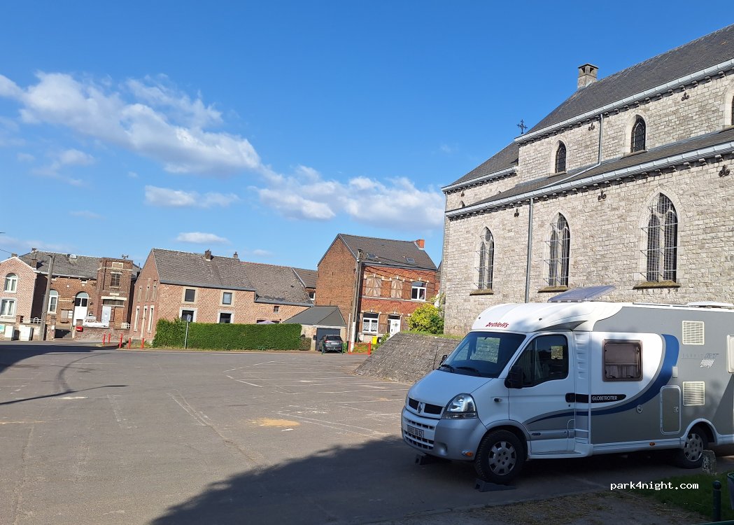 super Standort für eine Nacht, allerdings unter folgender Adresse bei der Kirche mitten im Dorf: Rue Joseph Wauters