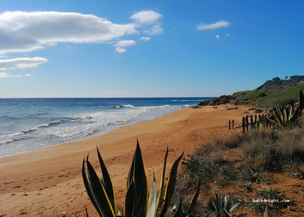 Endroit magnifique. Un parking d'une plage déserte hors saison, une vraie perle. On y accède par une route escarpée, mais bien placée et large. Pas de service, mais une belle plage à votre entière disposition.
