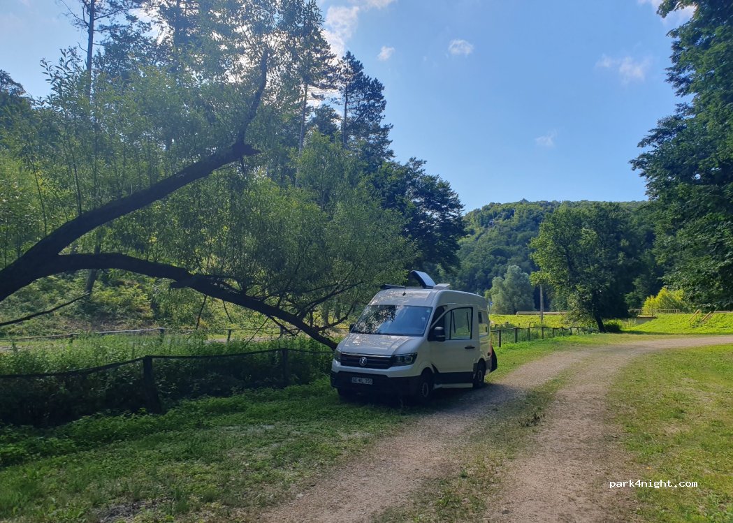 Calm and safe place. Close to the nature with birds. At night we have heard boars in the forest. :) Easy to reach with a camper.