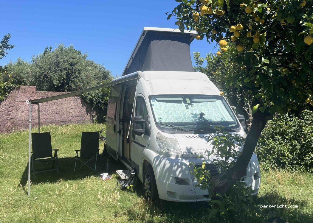 Ein Stellplatz mitten im paradiesischen Garten zwischen Palmen, Kakteen, Rosmarin, Zitronen & Kaki Bäumen. Traumhafte Aussicht auf den Ätna. Natalie ist sehr nett, hilfsbereit & bemüht. Sie kocht sehr gute typisch sizilianische Gerichte am Abend. Wir haben uns auch gefreut die verspielten Welpen & alle anderen Tiere zu sehen, denen es hier sichtlich gut geht. Wir würden wiederkommen! :)