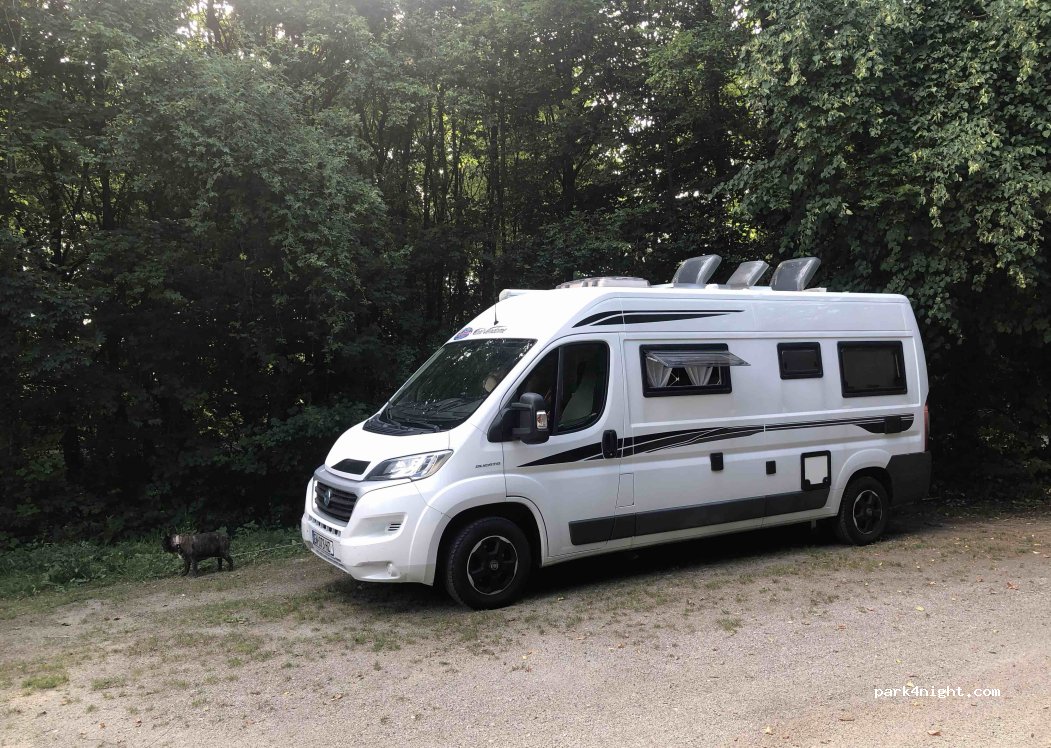 Parking du haras, boisé, en bord de route donc un peu de passage mais rien de gênant. Un très chouette spot pour passer la nuit au calme avec le braiement des ânes et le hénissement des chevaux au loin. WC publics propres à l'entrée du parking, café pour se restaurer si besoin, bref, tout pour passer une super nuit.
