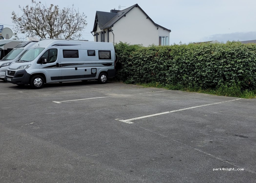 Parking avec 10 places env. Paiement sur borne pour stationnement et eau. Obligation d'avoir smartphone ! ! Système trop compliqué. Du coup personne paye...mais pas d'eau juste vidanges. Pas vu de contrôle à priori. Quartier très calme à 200 m du port. Très bien pour visiter Le Croisic
