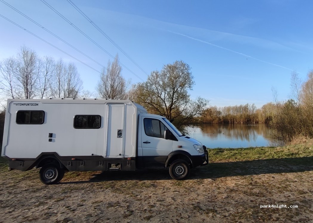 Pequeño rincón junto al estanque de pesca. Un poco ruidoso porque la vía del tren pasa justo por aquí. Aun así, es idílico, con vistas al lago/estanque. Tiene espacio para uno o dos Bullis. Un Wohnmobil también sería adecuado.