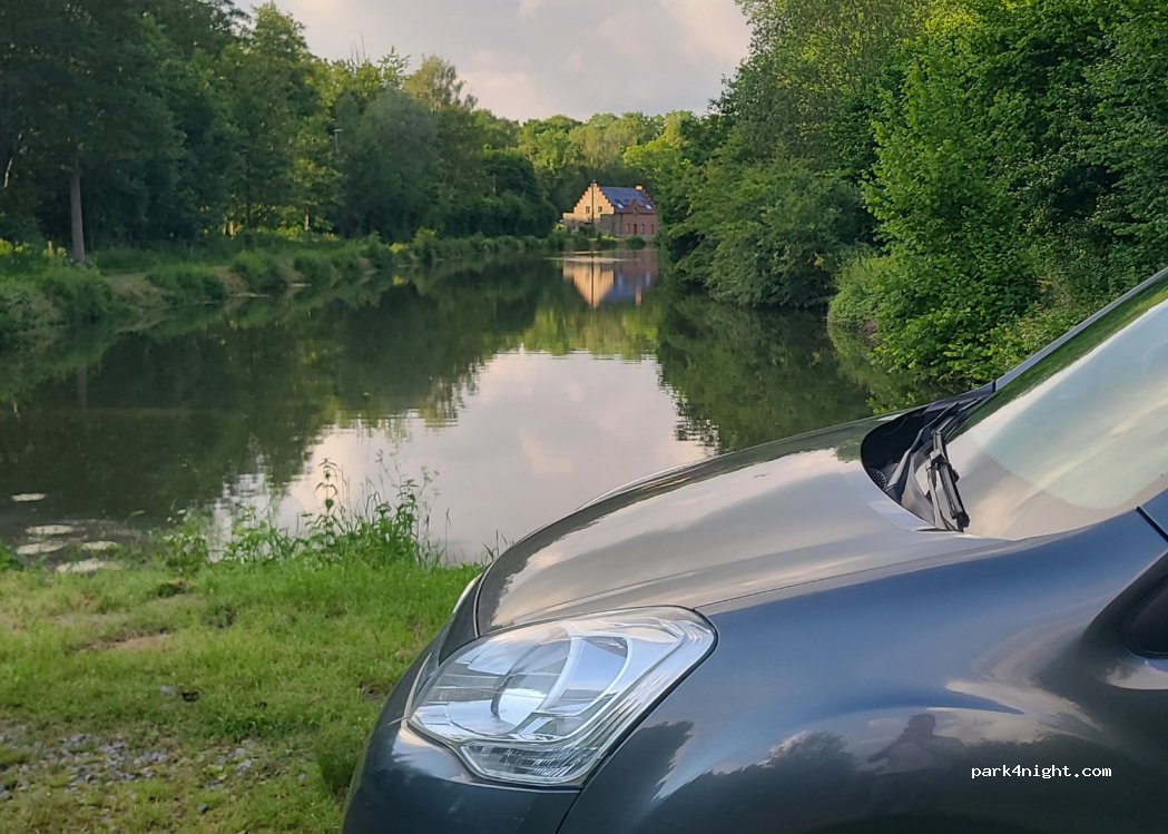 Quiet beautiful spot at the end of a watercourse next to the Brussels-Charleroi canal. Seen or heard no one, only barges and the donkey that was our neighbor for 1 night.
