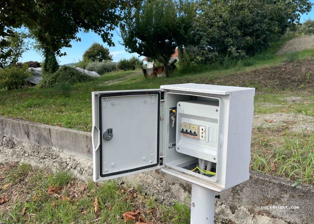 Ampio parcheggio su asfalto circondato da alberi e campi. Molto bello e tranquillo. Il paese a pochi metri e piccolino e delizioso come la chiesetta con il suo campanile che segna tutte le ore. Abbiamo trascorso una notte favolosa. Fontane e cestini per immondizia non mancano. I lampioni che illuminano il parcheggio sono spenti ma… è sufficiente avvicinarsi alle due colonnine e… accenderli! Ricordatevi di spegnerli al mattino!