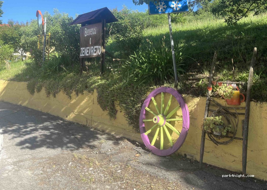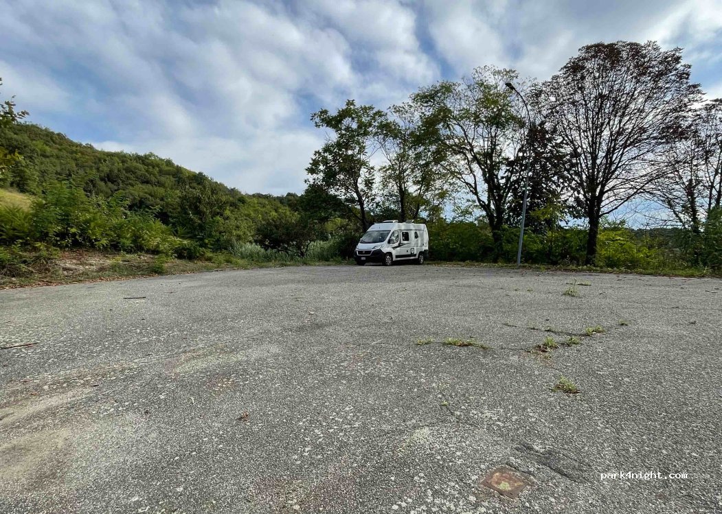 Among the hills of Monferrato. Parking suitable for day and night parking in the small town of Zenevreto without any service. Absolutely quiet place. the only disturbance was the bells. Drinking fountain for water supply closed in winter.