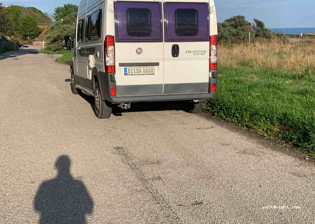 Excellent place to stop for the night, if you actually go to the left of the layby there is another perfect spot which looks out over to the sea, enough for three or four motorhomes or campers, picture attached.