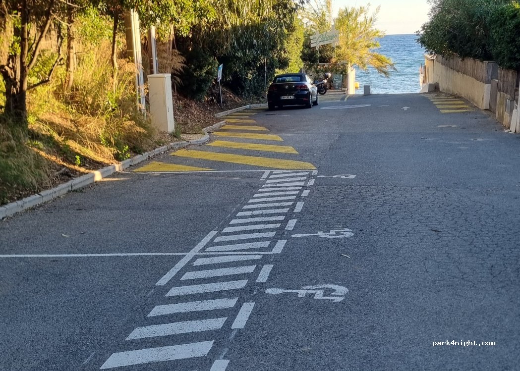 Petit parking gratuit de 19h à 9h tte l'année Calme, vue mer si première place Bon pour van et fourgon aménagé Un fois que le restaurant est fermé plus aucun bruit en dehors de celui des vagues
