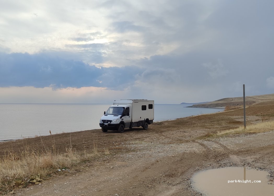 Schotterstraße für jeden Fahrzeugtyp zugänglich. Wir parkten am Wegesrand. Keine Sorge, Autos vorbeifahren zu lassen. Wir waren dort für eine Nacht. Sehr ruhig. Blick auf den See und die Felder. Nur 1 Auto fuhr vorbei.