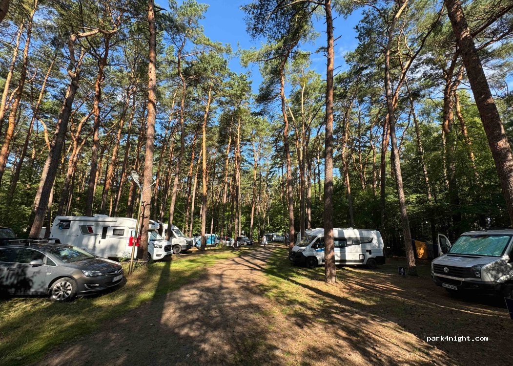 Schöner kleiner Platz im Wald. Anmeldung erfolgt telefonisch beim Campingplatzbetreiber, der gut englisch spricht (Telefonnummer ist ausgeschildert). 50 PLN für 2 Personen mit Van ohne Strom für eine Nacht. Nachts sehr ruhig, sanitäreinrichtungen sind einfach aber funktional.