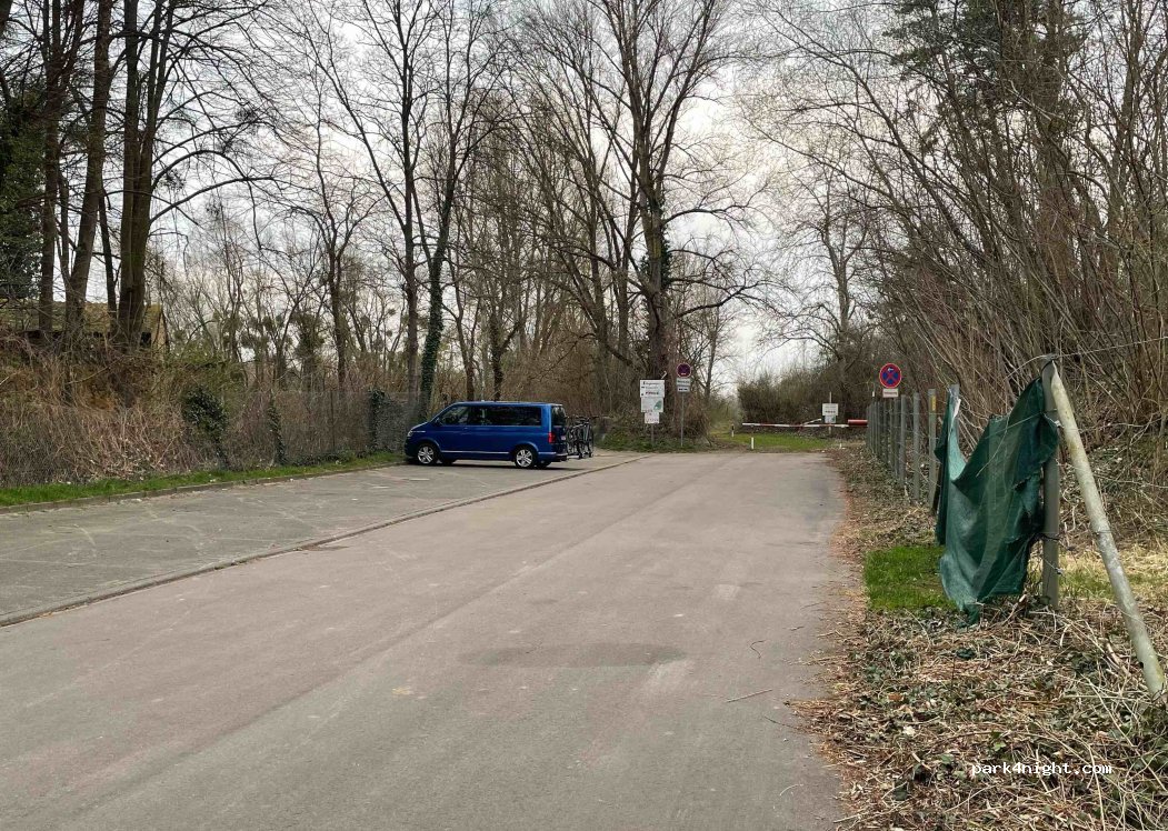 El estacionamiento está en un callejón sin salida en el lago de cantera Eggenstein-Leopoldshafen. Hay un baño cerca, pero no siempre está abierto. Atención mayores controles por parte de la oficina reguladora si se para durante la noche.