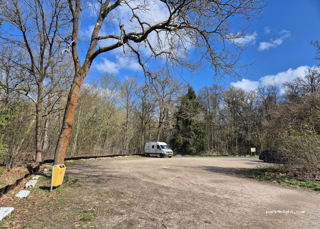 Parkeerplaats bij restaurant in de bossen. De weg is erg rustig, we hebben er prima geslapen. Je kunt vanaf de parkeerplaats verschillende wandelingen maken.