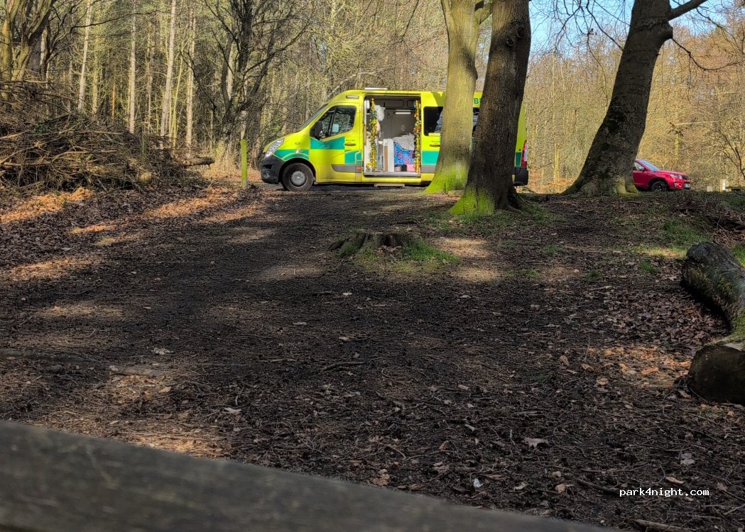 Lovely woodland, peaceful night here, great walk around woods in morning. Busy in morning with dog walkers & a few horses. Poor phone / wi-fi. Second car park Futher down track is smaller but nicer. Will use again when next over this way.