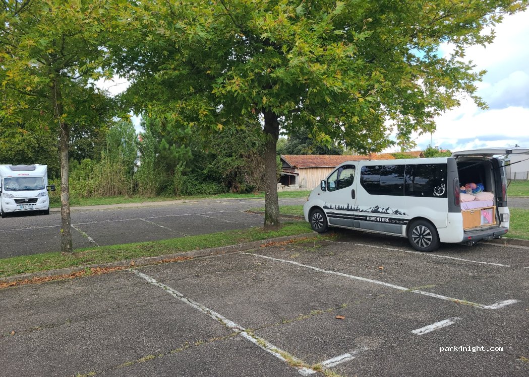 Bien pour une nuit sur la route à Biscarrosse car partout le camping sauvage est interdit dans le secteur. Autorisé gratuitement 24h, parking légèrement en pente. Nuit du jeudi au vendredi calme mais bruyant le matin car les habitants viennent se garer là pour aller au marché du coin le matin, sans aucune discrétion, du coup réveil assez désagréable.