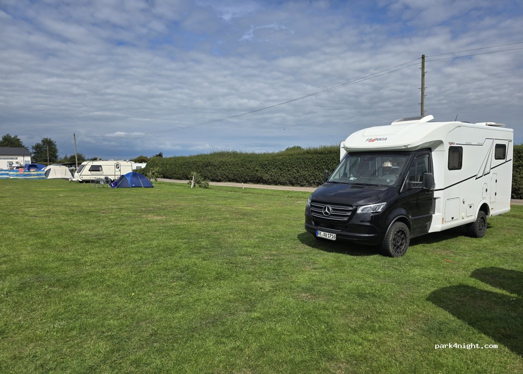 Guter, ruhiger und freundlich betreuter Platz auf offener Wiese. Gute und saubere Sanitäranlagen. Kleine Bar mit Bier vom Faß ab 17h, Pizza freitags und samstags. Zu Fuß 15 min zum Strand und Pub.