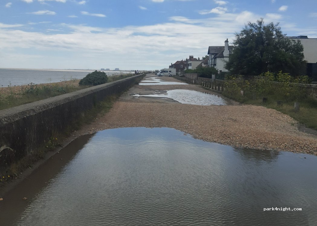 Wonderful place to stay, with lovely walks both ways along the coast and inland too. Final bit of road in front of the suggested wall is very deeply potholed, so best not arrive after dark! Locals seem very friendly towards tidy and quiet motorhomes/campervans. A trip on the nearby Romney, Hythe and Dymchurch Railway is a must!