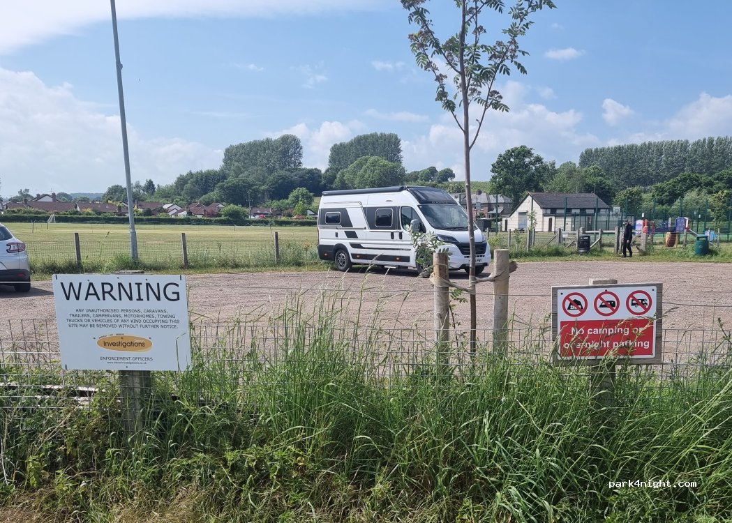 Free Car Park. New notices ban overnight stays. No facilities. Dogs not permitted on recreation grounds, walks available from footpath opposite car park. Picnic area by the river. Plenty of Room.