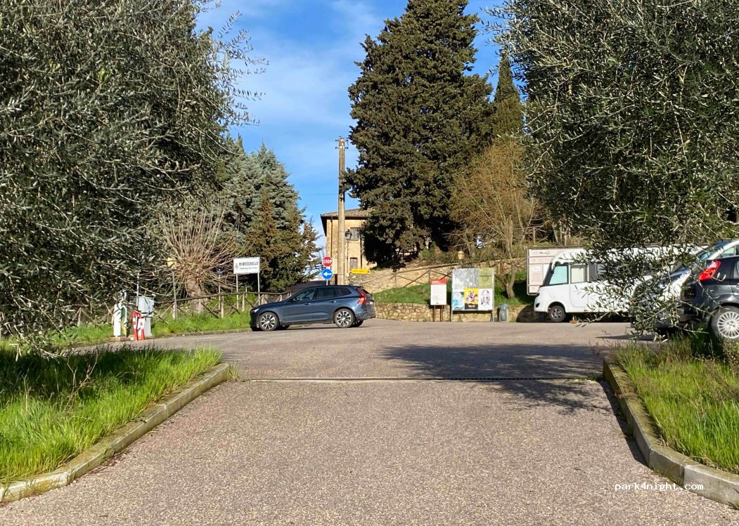 Parcheggio gratuito e sicuro sotto al borgo ideale per visitarlo Non dormirei perché è in notevole pendenza