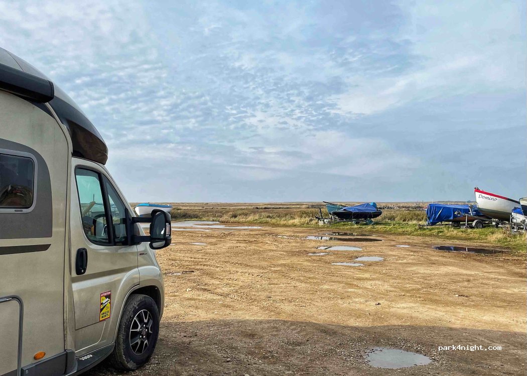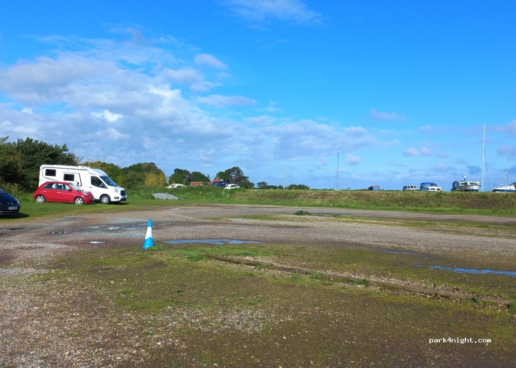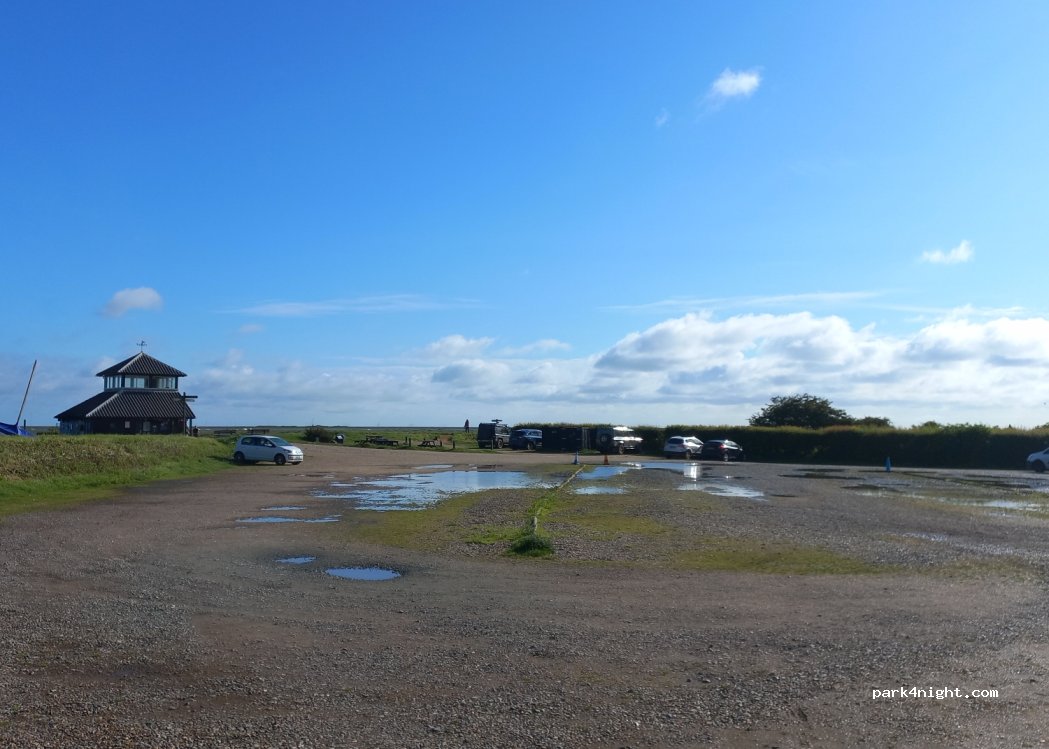 National Trust Day parking. Access lane quite narrow, but big gravel car park by river / coastal path to Blakeney or Stiffkey. Public toilets, bins on site. picnic benches. £8 a day for campervans. Machine only takes coin or NT member card, to pay by card must go to visitor centre which opens at 10am. didn't see any signs regarding overnight