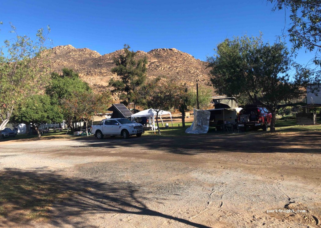 Springbok Caravanpark in Springbok. About 90 campsites with some shadow from trees. Sites with grass or gravel. Swimmingpool and very clean ablutions. Water, braai and electr on each site. Close to Springbok, the biggest town in the North Cape, where you can buy everything you need befor going to Namibia. And close to Goegap Parc.