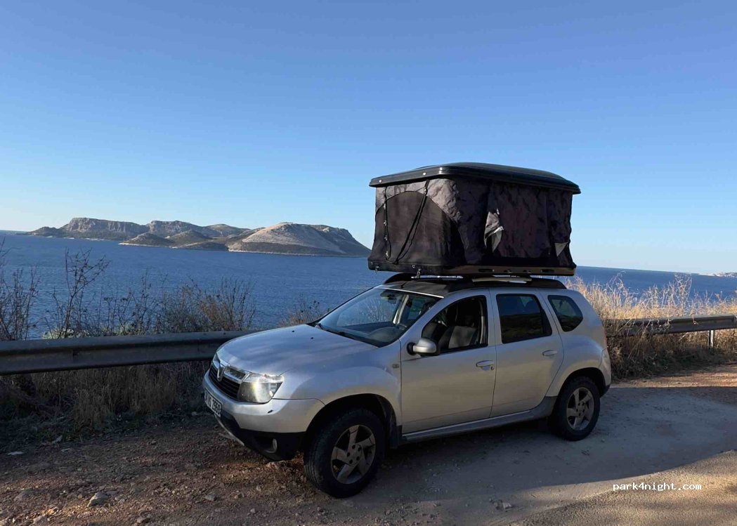 Yol kenarına park edip uyumalık yer. Ekimde geldiğim için yoğun araç geçmedi. Rahat uyudum.