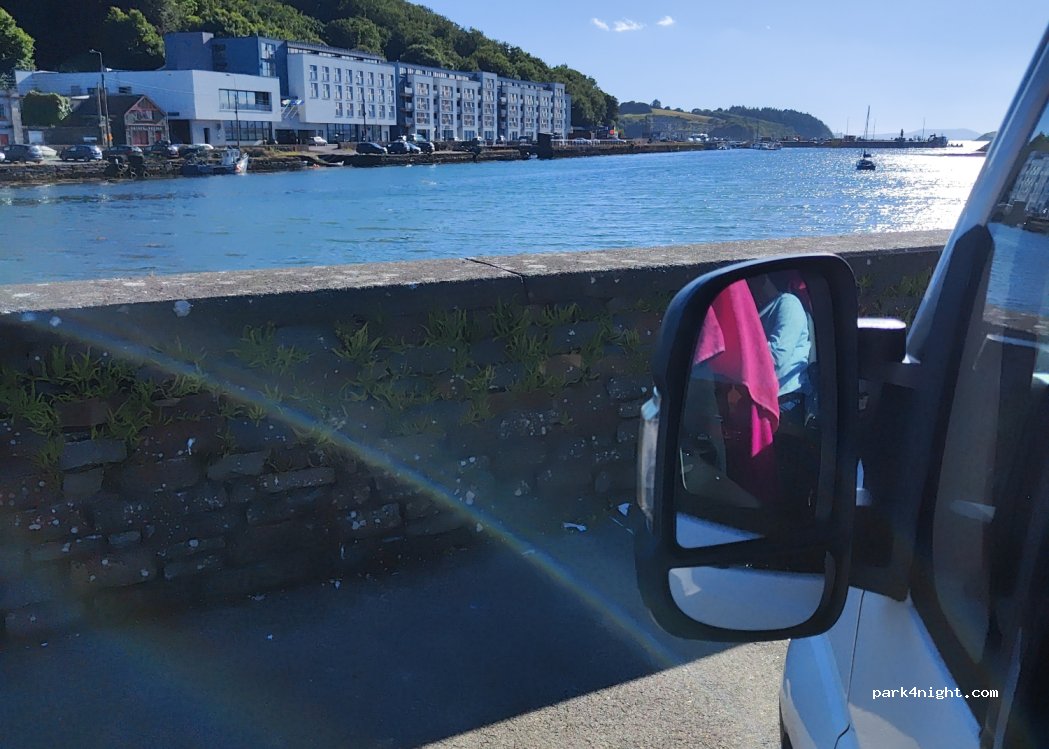 Parked here to visit Bantry. Normal carpark with some spaces for a motorhome overhang but if cars park both side it may be difficult to leave. Also country market is here on a Friday so no parking allowed. There is an official Aire at the port where there are payed services.
