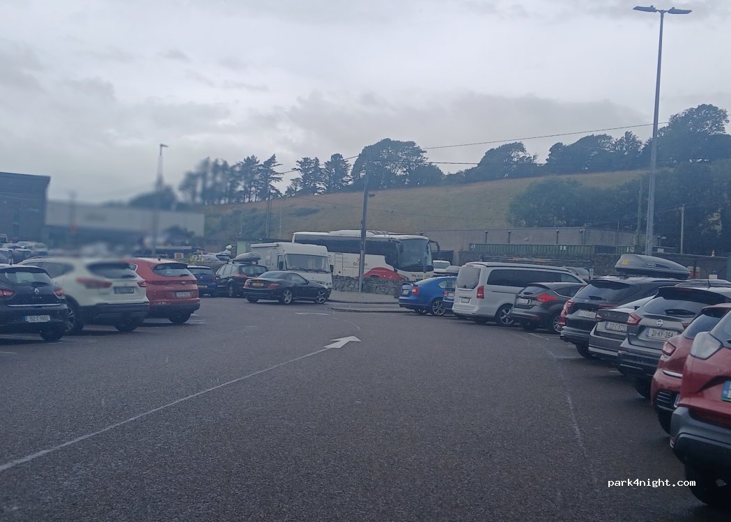 Very quiet when we arrived in the evening. No height barrier and ample room for our 6.5 meter van. Easy to manoeuvre out the next day when the car park was full. Toilets a minutes walk away open all night. SuperValu a few minutes down the road with a co-working space situated on the 2nd floor.