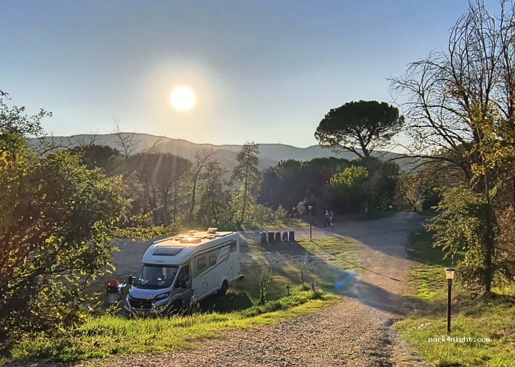 Great campsite, 21eur a night with Acsi card. Free shuttle to the train station which you book the day before. 35 min train into Florence ! The staff are really chilled and you can rock up and pick your own spot. You are parked up in the woods which is a nice change from the city !