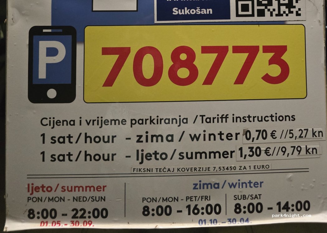 lovely bay but 10kn per hour 8am-10pm, payable in kn or by bankcard til end September. parking warden cycles round regularly. Still charged after October but for shorter period of time
