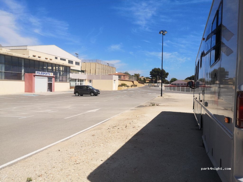 An esplanade of very flat land to spend the night without problems, quiet and very well lit! You have a shop and restaurant 5 minutes walk away !!