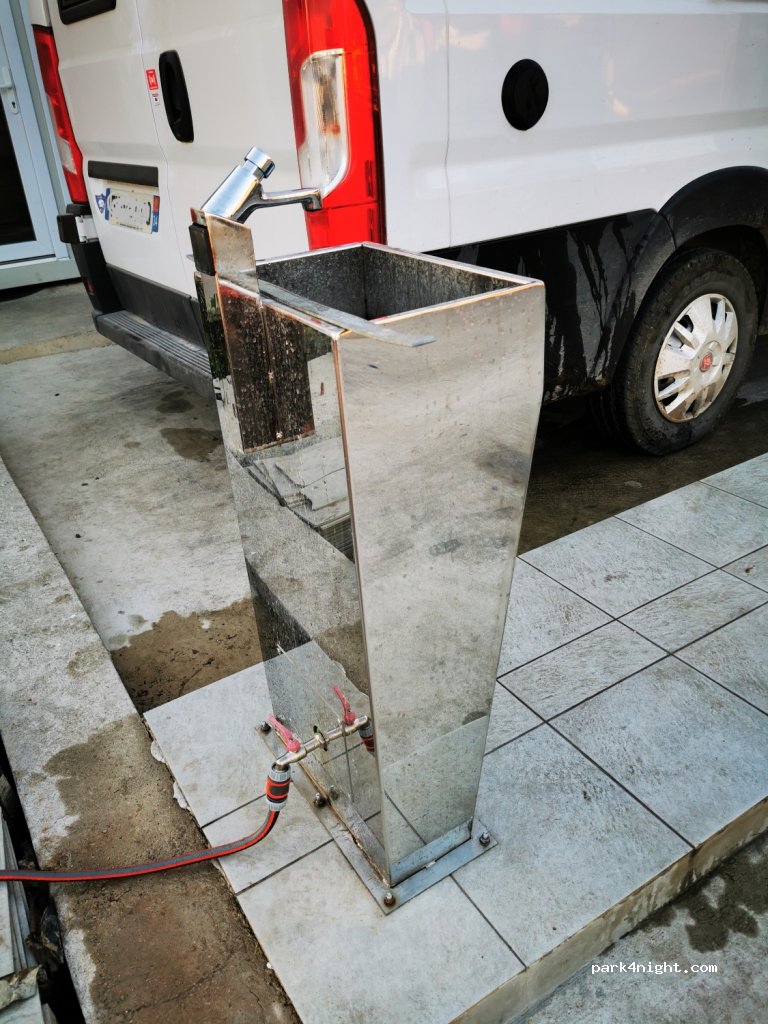 Waschplatz direkt neben der ina tankstelle. Haben den Besitzer gefragt und sogar einen Wasserschlauch zum Auffüllen des Wassertanks bekommen. Wasser ist kein Trinktwasser!