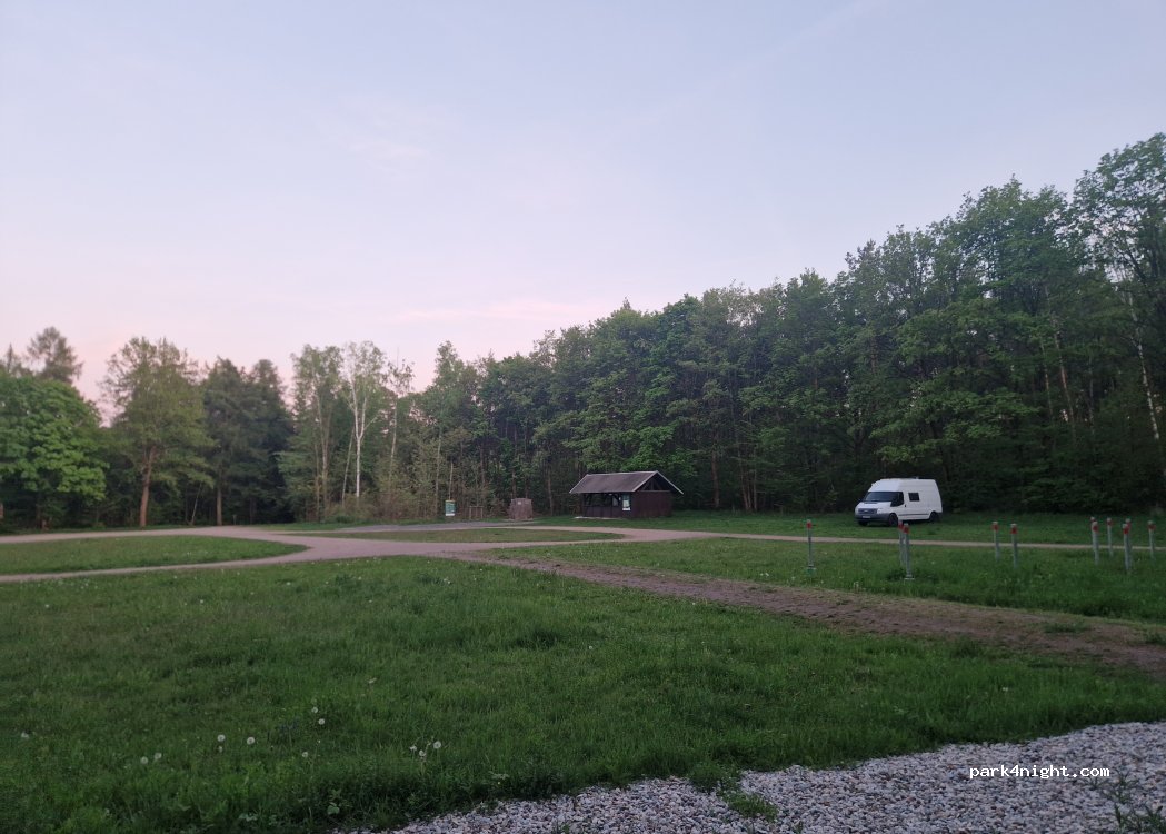 Schöner Stellplatz in mitten vom Wald. Man kann in Ruhe übernachten.