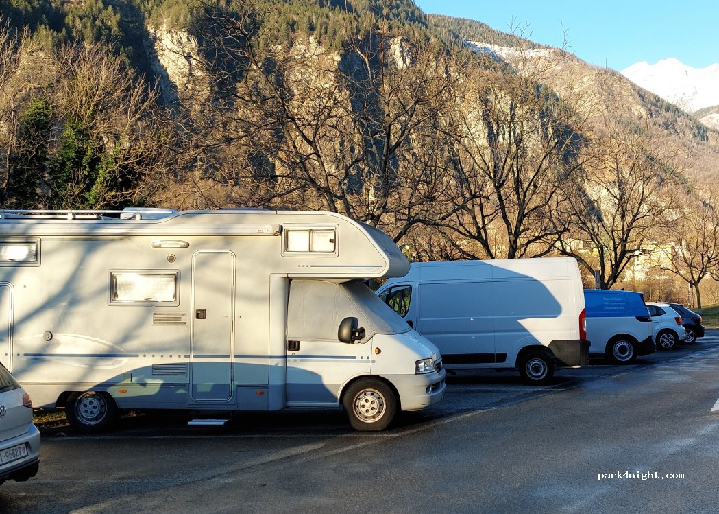 Free parking directly on the Ticino on the edge of the beautiful village of Giornico with the two bridges worth seeing. 5 minutes walk to the first bridge. No toilets. Trash cans at the bus stop. Perfect for a quiet night.