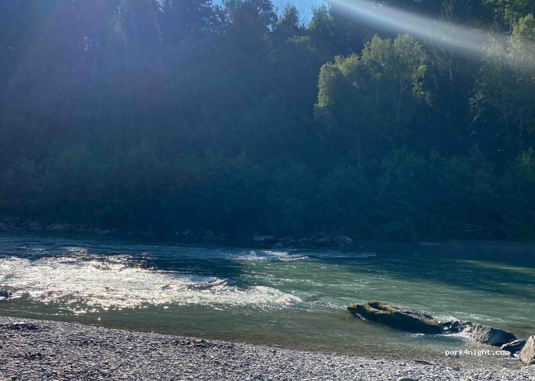 Sehr schöner Abgeschiedener Platz am Fluss mit tollen Wanderwegen in der Nähe. Im Fluss kann man sich gut abkühlen, die Autobahn hört man kaum. Bitte nehmt euren Müll mit/entsorgt ihn und zeigt auch sonst kein störendes Verhalten, damit der Platz noch lange erhalten bleiben kann.