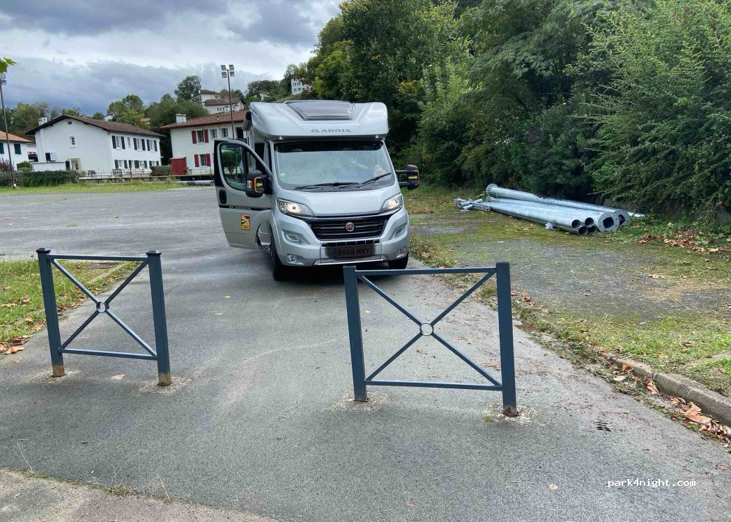 Aire très bien située, proche du centre ville. Bonne alternative à l'autre aire de camping-car de Saint-Jean-Pied-de-Port, plus agréable mais bondée en haute saison. Un peu d'ombre. Parking bétonné.