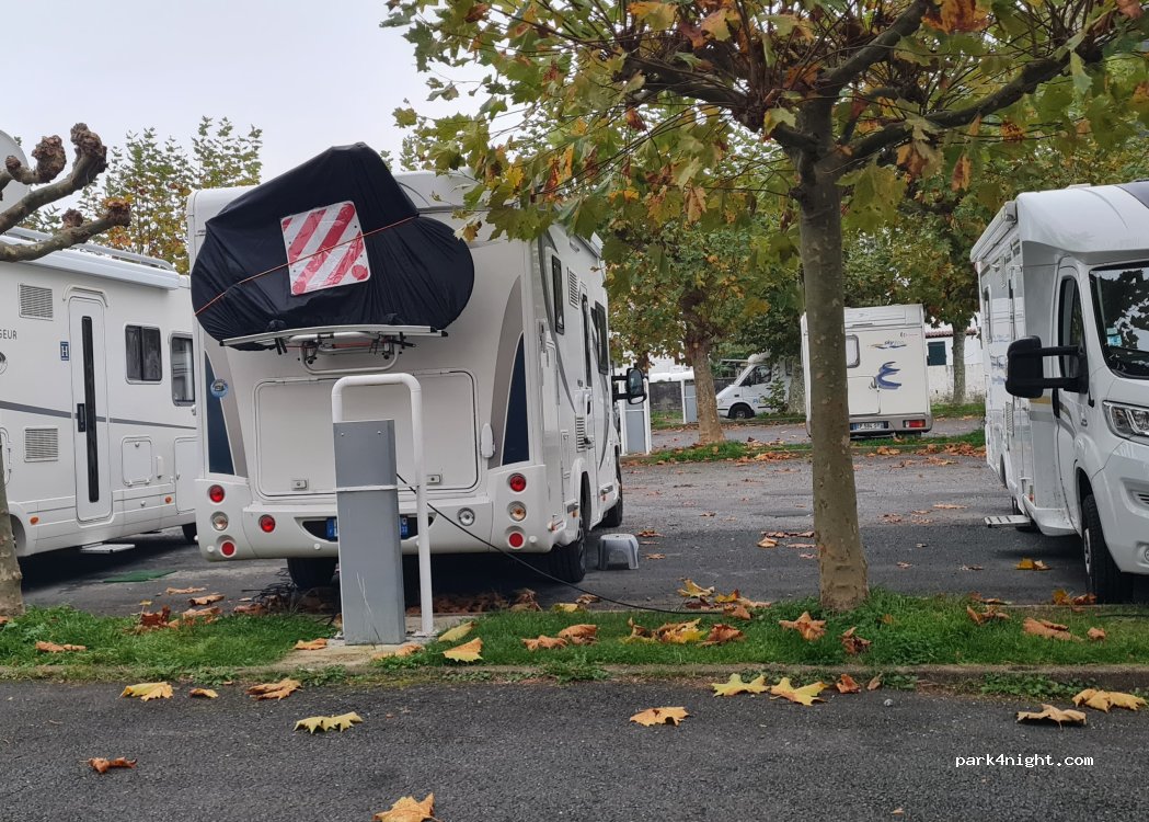 Aire agréable et peu fréquentée à cette période. Nuit très calme. Proche du centre ville et des commerces. Rien sur les services. 22€ pour 48 heures.