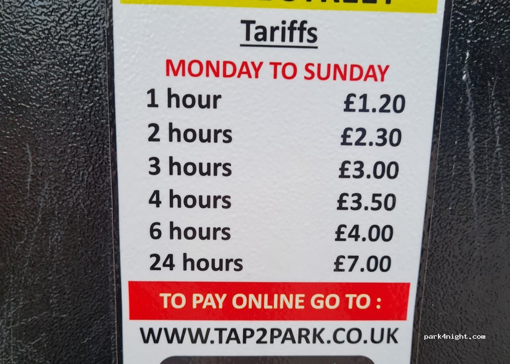 Privatparkplatz kann 24 Stunden für £ 4 bleiben. Kartenzahlungen wurden nicht akzeptiert.