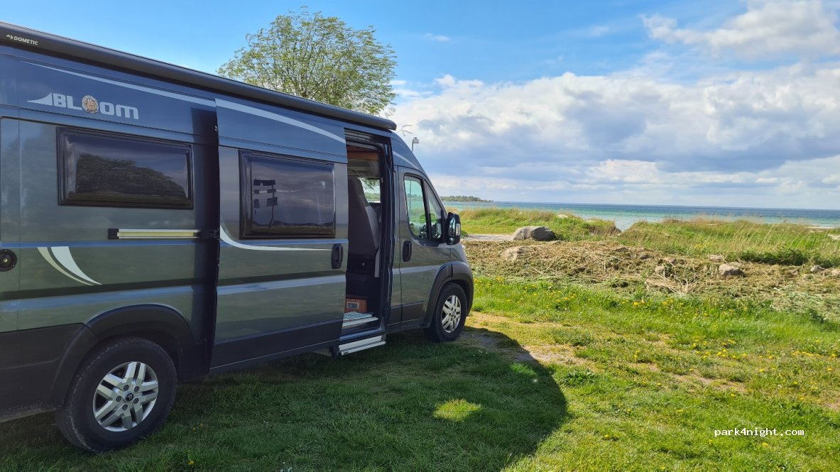 Day AND night parking lot!!!A lot of space to park, close to the beach. Pay easy by ticket machine or app called Parkster. It was only us and an other man here. We watched an amazing sunset. A little expensive to stay 24h but to stay only to sleep it’s less expensive than going to a camping site.