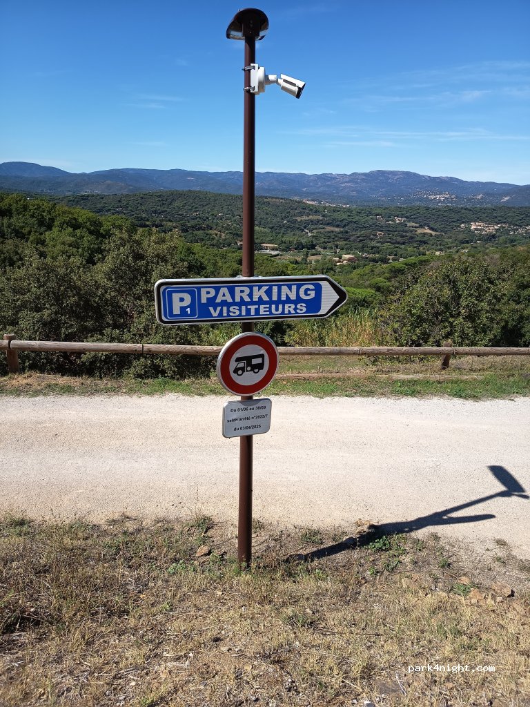 Parked Saturday 20 October, on the top carpark (there are 2, follow signs for 'parking visiteurs') Flat, over the hills. 5 mins walk (uphill) to village of Gassin. Absolutely quiet, We were alone on the parking.