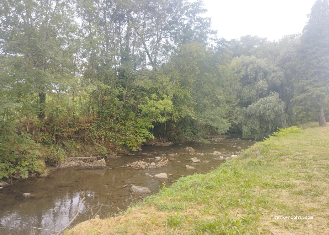 Au calme en bord de rivière petite route d'accès goudronnés mais étroite à déconseiller au camping-car seuls les fourgon et les vans peuvent avoir accès, parking deux places.