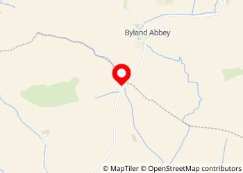 Large lay-by on a quiet country lane on the other side of the hillock from the picturesque medieval ruins of Byland Abbey, which is currently free entry with lots of information boards. The Abbey Inn opposite the Abbey serves food and drinks.