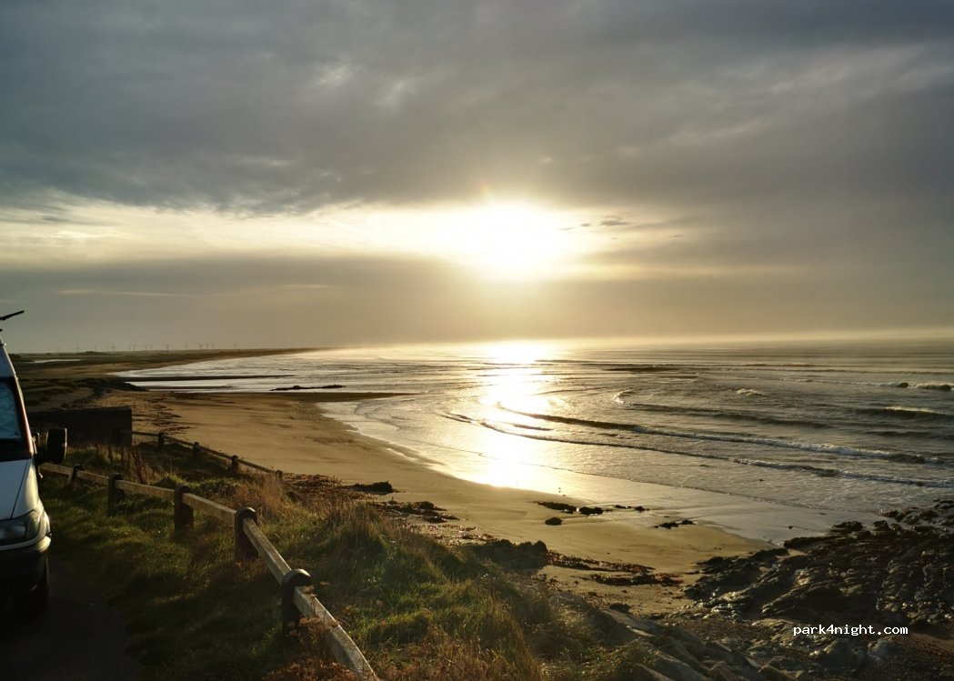 Awesome spot, turn right and head up the hill, you'll find a tarmac area for over height vehicles. The perfect spot is next to the beach, offering a peaceful environment. There were a couple of other campers here when I stayed overnight.