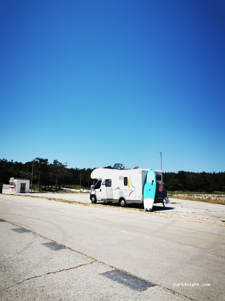 Parking payant de la plage de Zrće. Accès direct à la plage, ce qui est agréable. Idéal pour les familles en basse saison. Quartier "Ibiza" en été. Douches de plage 5kn 30 secondes.