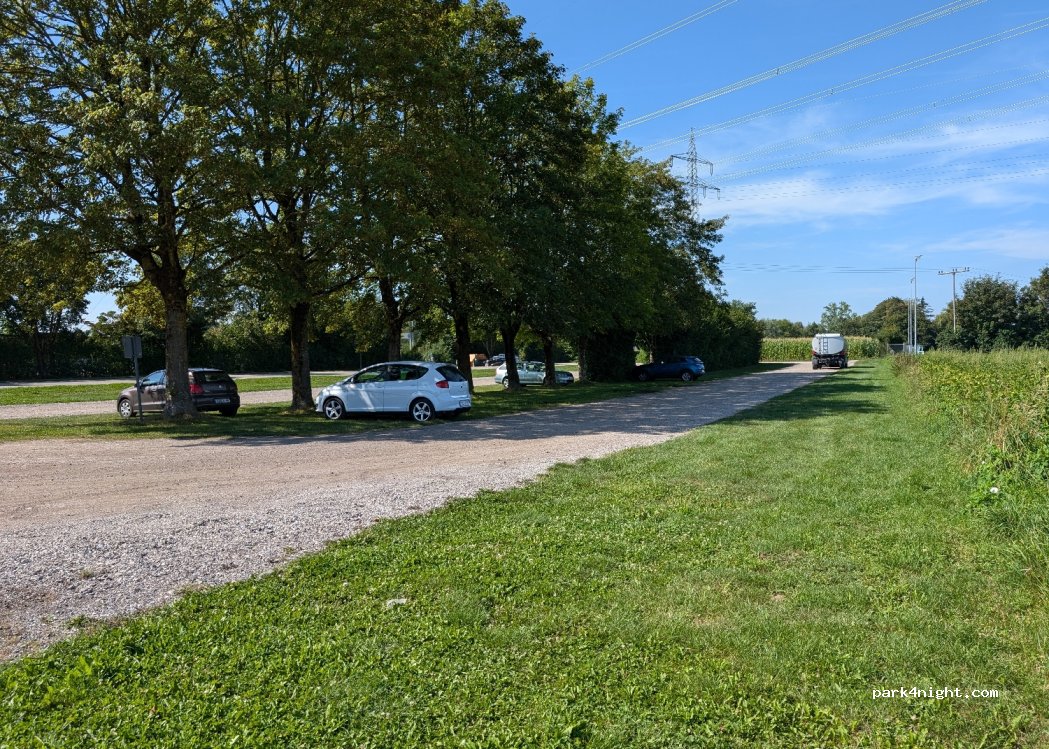 Wir können diesen Parkplatz nur empfehlen. Kostenlos . Ruhig , tolle Aussicht aufs Maisfeld ;) Weiher inkl. Sandstrand mit kinderbereich gleich daneben. Echt super . Wir kommen wieder ;)